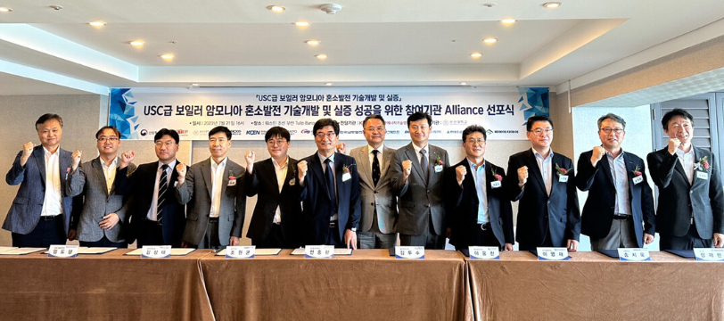 21일 부산 웨스틴조선에서 'USC급 보일러 암모니아 혼소발전 기술개발 및 실증'의 성공적인 사업 수행을 위해 열린 '참여기관 Alliance(제휴) 선포식'에서 선포서 협약을 마치고 참여기관 대표자들이 기념촬영을 하고 있다. 사진=부산대 제공[대학저널 온종림 기자] 부산대학교는 지난 21일 탄소중립의 핵심 실증사업인 산업통상자원부 ‘USC급 보일러 암모니아 혼소발전 기술개발 및 실증’의 성공적인 사업 수행을 위한 ‘참여기관 Alliance(제휴) 선포식’을 했다고 24일 밝혔다.선포식에는 탄소중립 핵심 실증사업의 일환으로 에너지기술평가원이 시행하는 정부 연구과제에 참여하는 기관들이 한자리에 모였다. 산업부와 정부의 암모니아 혼소발전 기술개발과 친환경 연료전환 공동연구를 총괄하고 있는 부산대와 한국전력, 발전공기업 5개 기관, 보일러 주기기 제작사 3사 등 실증사업에 참여하는 전체 25개 기관이 참여했다.Alliance 선포식에서 선포서를 체결한 10개 기관은 오는 2027년 12월까지 실증 사업의 성공을 위한 유기적이고 긴밀한 협력을 약속했다.부산대는 이번 협약으로 정부의 2030년도 온실가스 감축 목표(NDC, Nationally Determined Contribution) 달성을 위한 핵심기술인 암모니아 혼소발전 기술개발과 친환경 연료전환을 위한 공동연구개발 및 상호 협력체계 확립과 실무협의체 운영 및 구성을 포함하는 300여 명 연구원 규모의 Alliance를 운영하기로 했다.실증사업의 총괄 연구책임자인 부산대 전충환 기계공학부 교수(대외협력부총장)는 “이번 실증사업 Alliance 선포를 통해 정부와 무탄소 발전의 핵심 연구기관인 부산대 청정화력발전에너지연구소, 무탄소 발전 기술 실현을 위한 한국전력공사 및 발전공기업의 실증 사이트 제공 그리고 국내 보일러 주기기 제작사의 협업을 기반해 한국의 무탄소 발전 기술의 안정화에 시너지 효과를 얻을 수 있을 것으로 기대한다”고 밝혔다.출처 : 대학저널(https://dhnews.co.kr)